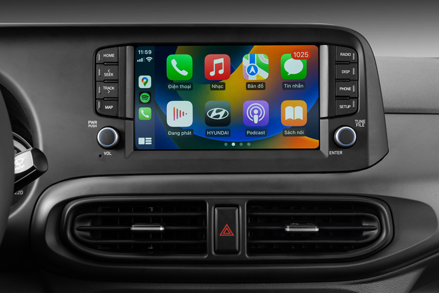 Với màn hình giải trí 8 inch hỗ trợ Apple CarPlay và Android Auto có dây, New Grand i10 mang đến khả năng kết nối đa dạng và trải nghiệm giải trí tuyệt vời. Bạn có thể dễ dàng truy cập vào các ứng dụng yêu thích, dẫn đường, nghe nhạc và nhiều tiện ích khác, giúp hành trình trở nên thú vị và thoải mái hơn.
