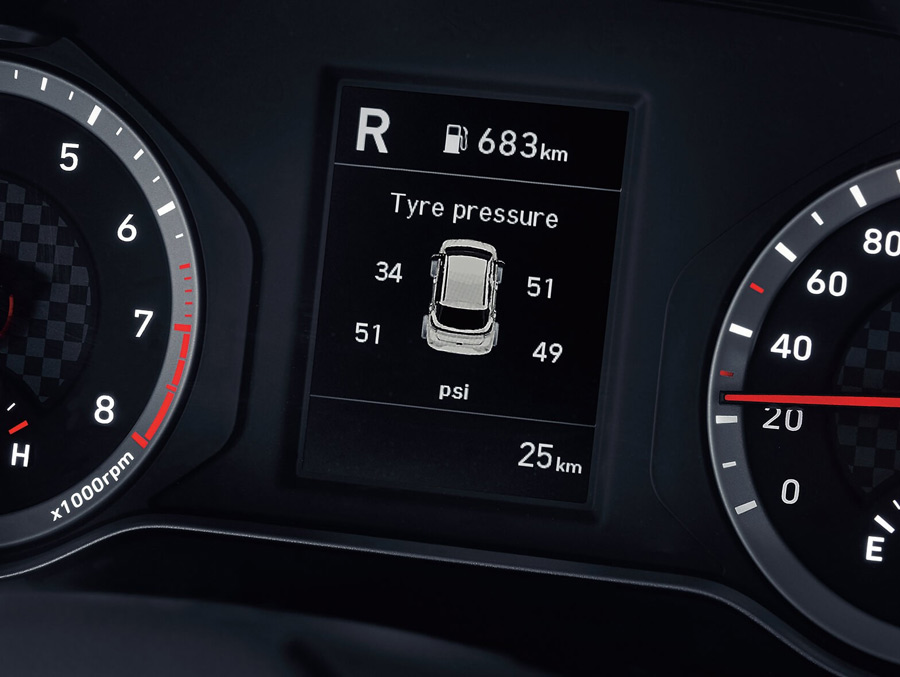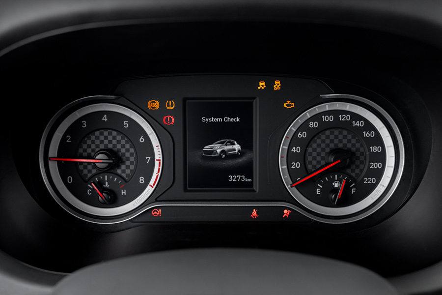 Cảm biến áp suất lốp trên New Grand i10 theo dõi liên tục áp suất của từng lốp xe, cung cấp thông tin kịp thời cho người lái nếu có sự thay đổi bất thường, từ đó giúp duy trì hiệu suất vận hành và đảm bảo an toàn trên mọi cung đường.