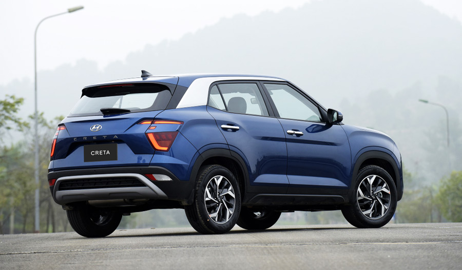 Cụm đèn hậu dạng LED của Creta 2022 được thiết kế rời rạc nhưng khá bắt mắt, cản dưới được mạ bạc bắt mắt, ống xả của xe được ẩn vào bên trong giúp xe linh hoạt và gọn gàng hơn.